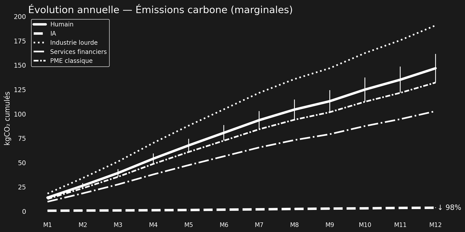 Bilan carbone Employé administratif (bureau + trajets) : ≈ 100–200 kgCO₂/an. Serveur IA : 0,1–0,5 kgCO₂ pour 1000 docs/mois → 1–6 kgCO₂/an.